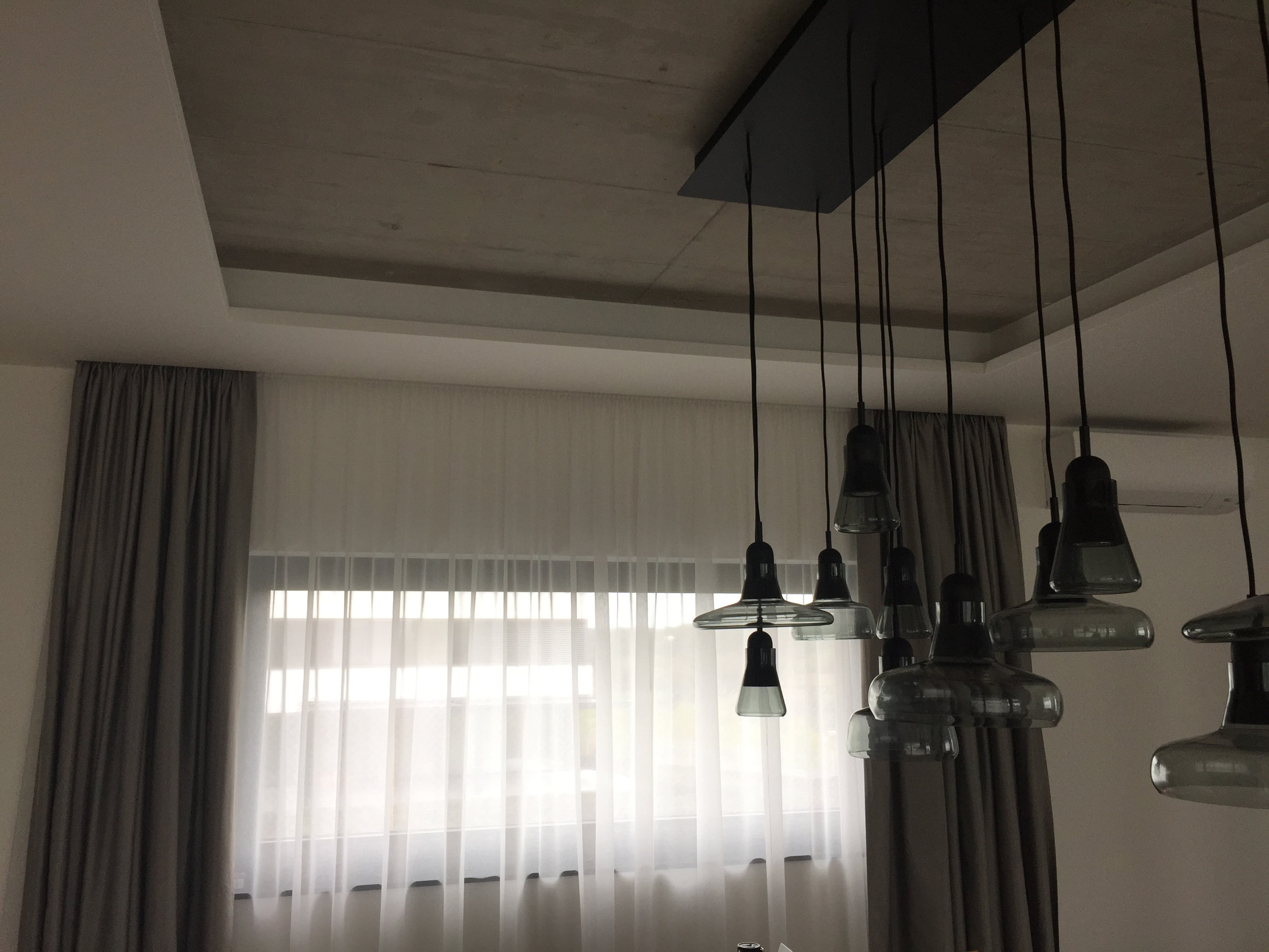Decentní, funkční a plně zatemňující závěsy, dotváří moderní minimalistický interiér. Záclony ze směsi přírodního hedvábí a polyesteru celou vilu zútulnily a vylepšily akustiku. Používali jsme hliníkové průjezdné kolejnice zapuštěné do SDK, stropně přisazené do připravených kapes. Ve vybraných pokojích jsme je na místě ohýbali do daných oblouků a pravých úhlů. Vše bylo doladěno celoplošnými koberci a čalouněným nábytkem.