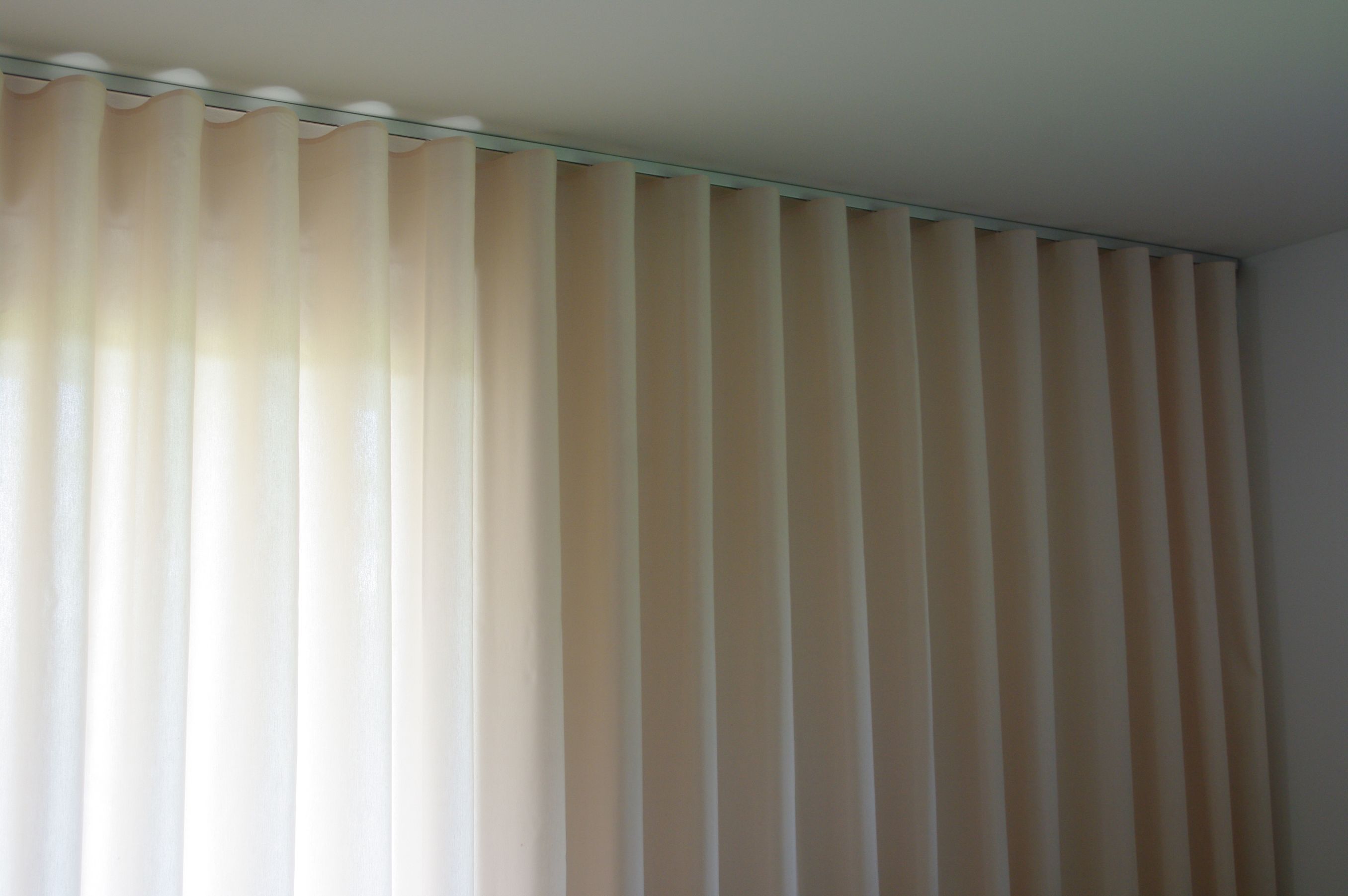 Interiér v rudé a krémové. Len bývá oblíbený kvůli své ležérnosti a přírodnímu vláknu, rád se jemně mačká. Díky vybraným kolejnicím s lankovým vedením závěsy působí, k radosti klienta, naopak sofistikovaně a poslušně 😊.